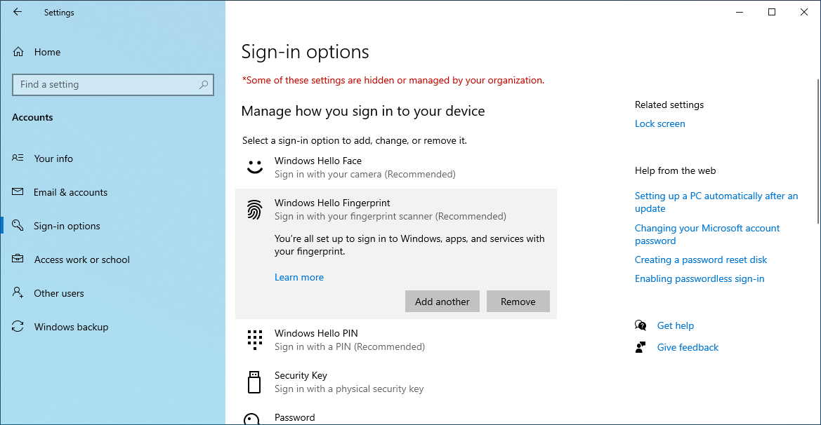 If your computer has a fingerprint reader you can register your fingerprint(s) as a biometric key, allowing you to login to Windows (and MFA) with your fingerprint.