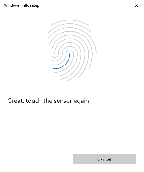 Follow the instructions on the screen to remove and re-place your finger on the reader repeatedly.