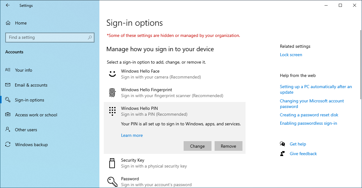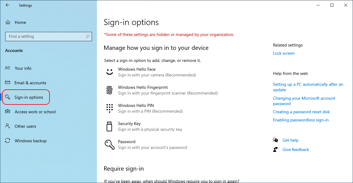 Open Sign-in options in the left sidebar.
