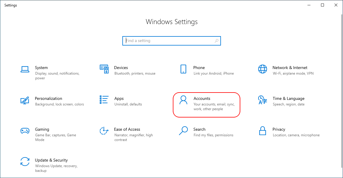 Open Settings, click on Accounts button